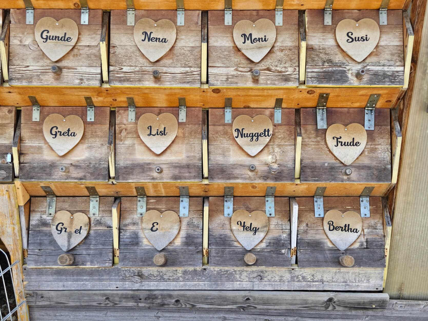 Ein absolutes Highlight war außerdem der hoteleigene Hof mit seinen Tieren, die ins Spielplatzgelände bzw. den Hof integriert sind. Bevor wir darauf näher eingehen, muss ich abermals ein durchdachtes Detail loben. Das gesamte Gelände ist eingezäunt, sprich die Kinder können überall hin, jedoch nicht auf die Straße oder in den Wald, ohne das wir es mitbekommen. Die Kinder waren sofort verliebt in die flauschigen Hasen und haben eine wirklich sehr kinderliebe Ziege gefüttert, die sich über Löwenzahn und Gras gefreut hat. Auch die Ponys standen hoch im Kurs und wurden ausgiebig bestaunt. Die wohl charmanteste Idee des Hotels ist aber das Erlebnis bei den Hühnern.