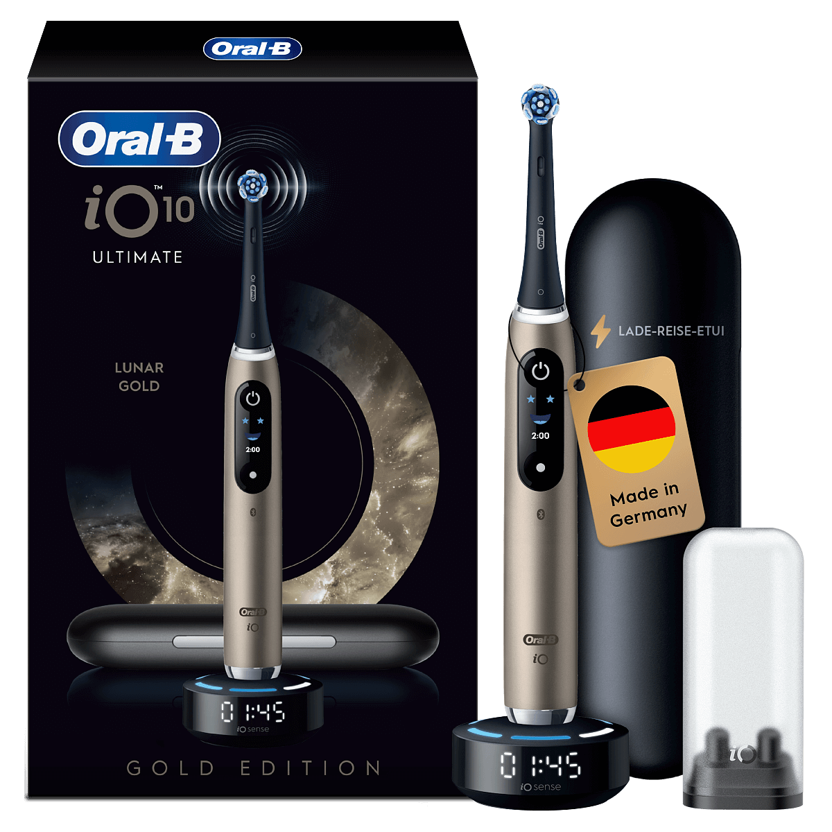Mit der iO10 Gold Special Edition setzt Oral-B neue Maßstäbe für die Zahnpflege und das ideale Geschenk für die Festtage. Mit dieser exklusiven Special Edition in den Farbvarianten Lunar Gold und Eclipse Gold vereint Oral-B außergewöhnliches Design mit modernster Technologie und überzeugt mit einer Vielzahl optimierter Funktionen. Das Herzstück der Innovation ist die Smart Adapt Technologie: Ein intelligenter Putz-Autopilot, der die Reinigungsintensität automatisch an den individuellen Putzstil anpasst und so für eine effektivere und komfortablere Reinigung sorgt.