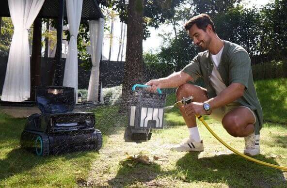 Neben seiner überlegenen Reinigungsleistung und seiner Ausdauer muss man beim Aiper Scuba X1 Pro Max auch noch seine Lautstärke hervorheben: Sehr leise und angenehm verrichtet er seine Aufgaben. Nicht nur, dass ihr (fast) keinen Finger mehr rühren müsst, nein, es ist auch noch komplett egal, wann ihr diese Reinigungen durchführen lasst. Die Geräuschkulisse reicht nicht mal bis zum nächsten Haus, und die Wartung des Geräts ist überdies auch noch zugänglich. Alles lässt sich einfach wegschieben oder wegklipsen, zwischen magnetischen Halterungen und cleveren Klick-Mechanismen beim Filter gibt es hier absolut keine Hürden. Dadurch, dass der kleine Reinigungspanzer ohnehin komplett wasserdicht ist (wer hätte das gedacht?), könnt ihr ihn wie auch die Filter einfach mit einem Gartenschlauch samt Aufsatz abspülen. Das funktioniert einfach, und binnen Minuten wäre der Allrounder auch schon wieder einsatzbereit. Übrigens: Er wird mit einer vollständig kabellosen Ladestation geliefert, die sicheres Laden und einfaches Lagern ermöglicht.