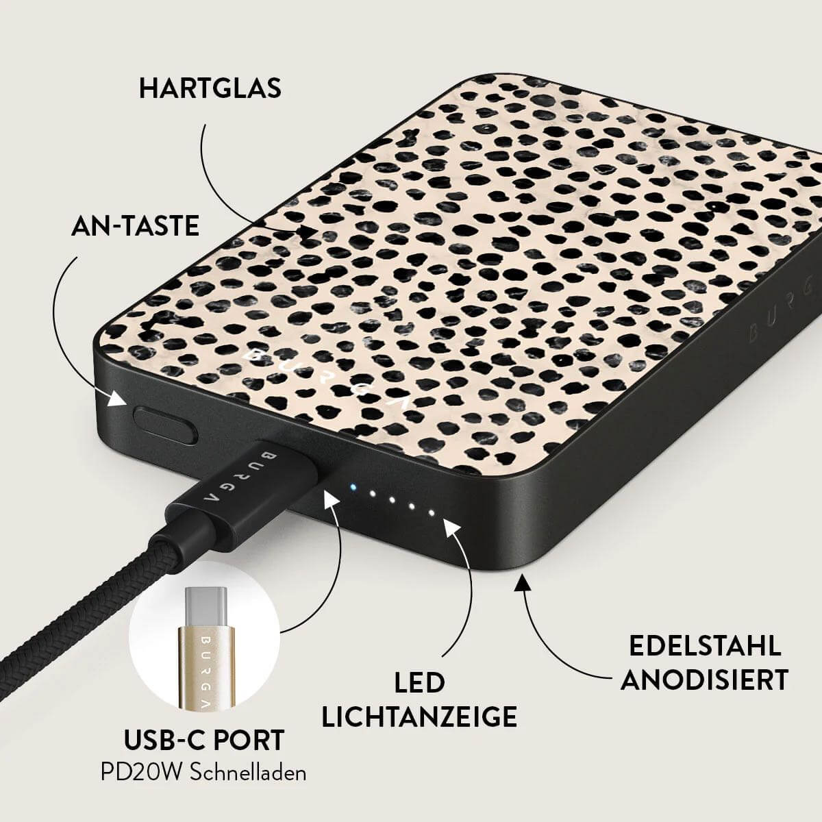 Wie schlägt sich die Powerbank nun im Alltag? Sie tut exakt das, was sie soll. Der Mix zwischen Luxusartikel und praktischem Akku-Pack macht auf jeden Fall stets eine gute Figur, ob es nun in der Tasche oder am Tisch ist. Dadurch, dass ihr sogar zwei Geräte auf einmal (einmal kabelgebunden, einmal kabellos) laden könnt, ist sie auch äußerst vielseitig, und die edle Aufmachung schadet dabei nicht. Unangenehme Überraschungen gab es in keinem Fall, und das mitgelieferte Kabel ist ebenfalls sehr hochwertig und wirkt langlebig. In etwa vier Stunden ist die Powerbank wieder schonend aufgeladen, auch das spricht für eine lange Lebensdauer bei diesem Produkt. Wer einmal die Vorzüge von Apples MagSafe-Peripherie erkannt hat, freut sich über Geräte wie diese Powerbank von BURGA!
