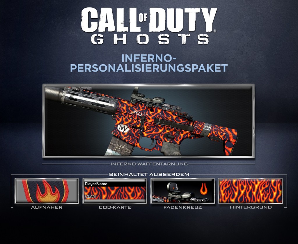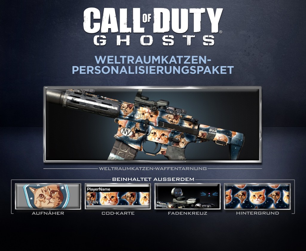 Mit den neuen Personalisierungspaketen „Inferno“, „Quietscheente“, „Kurzschluss“ und „Weltraumkatzen“, die alle für den Multiplayer-Modus erhältlich sind, lassen sich zum Preis von je 1,99 Euro neue Waffentarnungen, Aufnäher und COD-Karten sowie Hintergründe und Fadenkreuze freischalten.