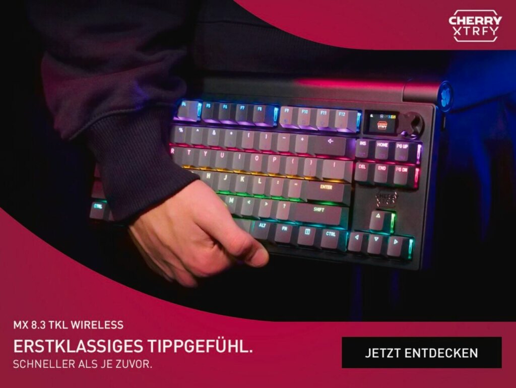 Die Preise gestalten sich wie folgt: Während die CHERRY XTRFY MX 8.3 TKL für eine UVP von 299,- Euro in den Handel kommt, liegen die Kosten für die Mauspads klar darunter. Das GP6 und GP7 werden in der Größe L (460 x 400 x 4 mm) erhältlich sein. Die GP6-Variante kostet 29,- Euro (UVP), und die GP7-Version kostet 39,- Euro (UVP). Alle Produkte sind ab heute im Handel zu haben.