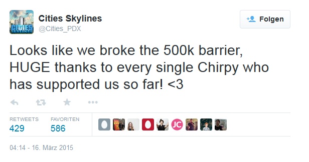 Der Höhenflug von Paradox Interactives Städtebausimulation Cities: Skylines geht weiter. Nachdem bereits in den ersten 24 Stunden nach Release die Marke für 250.000 verkaufte Exemplare geknackt wurde, ist nun die halbe Million voll. Laut einem offiziellen Twitter-Post wurde dafür nicht einmal eine Woche benötigt.
