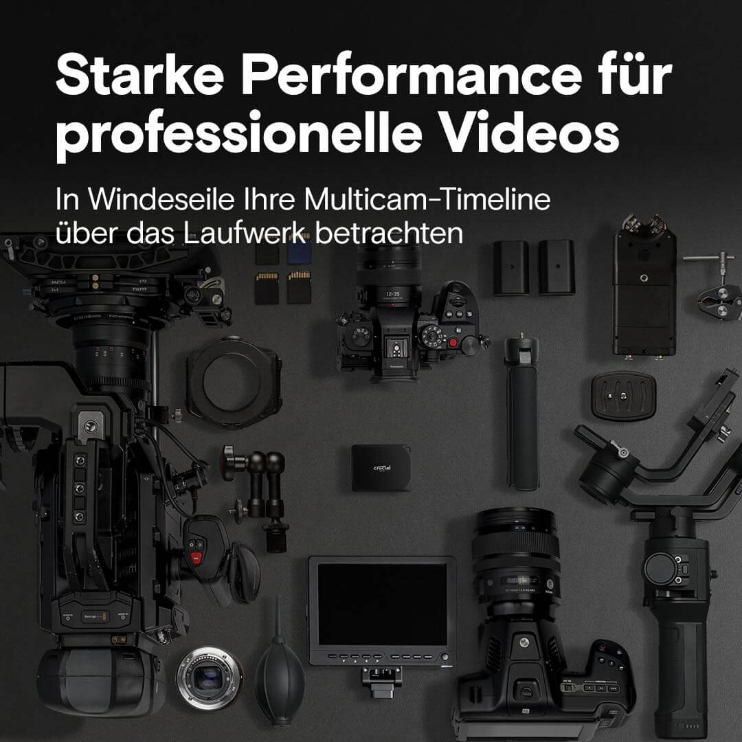 Auf der offiziellen Website geht es rund, denn der Hersteller Crucial verspricht vollmundig beste Performance. Rasante Geschwindigkeiten bis zu 2100 MB/s sollen so erreicht werden, und das ist noch nicht alles: Selbst bei den Schreibraten kann die Crucial X10 Pro bis zu 975 MB in der Sekunde hinbekommen. Dabei ist die Platte (natürlich) kompatibel mit Windows, Mac, Android, iPad, PC und Linux – alles nur eine Frage, wie ihr das Gerät formatieren wollt. Es kommt vom Hersteller im von allen Betriebssystemen lesbaren exFAT, und von da weg könnt ihr tun und lassen, was ihr wollt!