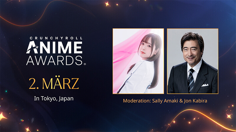Als Gastgeber:in für die Crunchyroll Anime Awards 2024 werden die Synchronsprecherin Sally Amaki und der Entertainer Jon Kabira zurückkehren. Sally Amaki ist Mitglied des digitalen Idol-Projekts 22/7 (Nanabun no Nijuni), einer Zusammenarbeit zwischen Sony Music und ANIPLEX und sowohl die englische als auch die japanische Stimme von Carol Olston aus dem romantischen Comedy-Anime Tomo-chan Is a Girl!. Jon Kabira ist ein Moderator und Conférencier mit einer umfangreichen Karriere in der Unterhaltungsbranche, der seit vielen Jahren in den Ressorts Radio, Musik und Sport arbeitet.