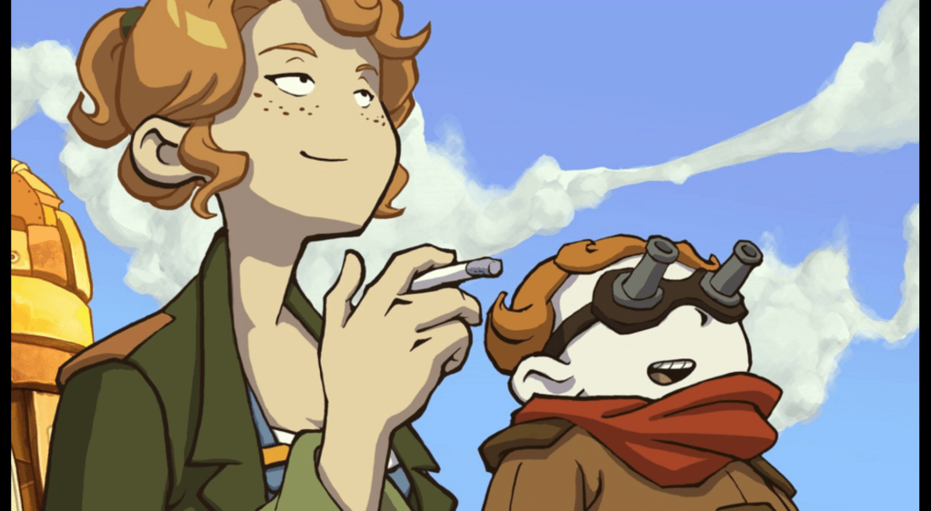 Als zuviel des Guten hingegen empfand ich den „Helden“ Rufus. Bereits in der ersten Szene lernen wir ihn als arroganten, selbstgefälligen Schmarotzer kennen, der noch immer in der Bude seiner Ex haust und sich bei ihr durchschnorrt. Rufus denkt stets nur an sich und schadet auch Leuten, die er als seine Freunde bezeichnet, ohne zu zögern, wenn er dadurch einen persönlichen Vorteil wittert. Selbst seine einzige gute Tat, die Elysianerin Goal zu retten, vollbringt er nur, weil er sich erhofft, durch sie von Deponia verschwinden zu können. Ob man Rufus mag oder nicht ist sicherlich Geschmackssache und die Entwickler haben mit ihm ohne Frage eine markante, einprägsame Figur entworfen. Mir persönlich jedoch ist selbst Kratos sympathischer als der dampfplaudernde Taugenichts.