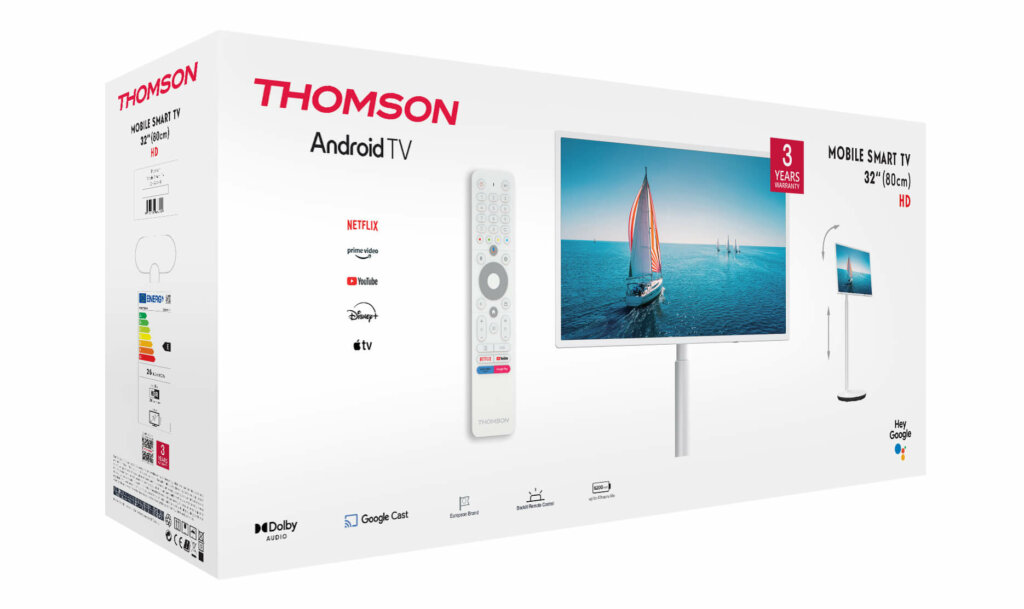 THOMSON bringt mit seinem neunen Go TV ein einzigartiges Produkt auf den Markt, das kabelloses Fernsehen und maximale Mobilität vereint. Der neue 32-Zoll HD Smart TV lässt sich dank seiner Rollen ganz einfach von Raum zu Raum bewegen. Ob im Wohnzimmer, in der Küche oder im Schlafzimmer – dieser Fernseher begleitet einen überall hin.