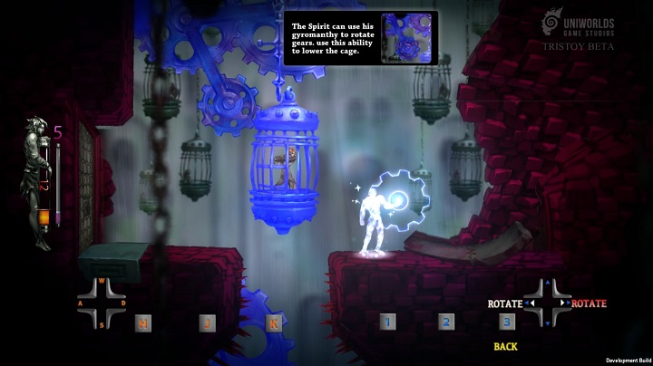 Bei Tristoy handelt es sich um einen klassischen 2D-Puzzler. Jedoch verzichtet das Entwicklerteam vollkommen auf einen Singleplayer-Modus. Stattdessen MÜSST ihr in Tristoy Couch-Koop-Sessions vom Feinsten bestreiten. Dabei geht es allerdings um weit mehr, als nur darum, gemeinsam durch die Levels zu turnen und die üblichen Plattformpassagen hinter euch zu bringen. Als Krieger Freedan könnt ihr beispielsweise Schaden austeilen und Felsbrocken schieben. Das ist auch bitter nötig, denn der/die zweite SpielerIn übernimmt die Rolle des körperlosen Magiers Staun. Dieser wiederum ist imstande, GegnerInnen abzulenken und angreifbar zu machen. Außerdem kann er Maschinen mittels Magie manipulieren und so neue Wege öffnen.