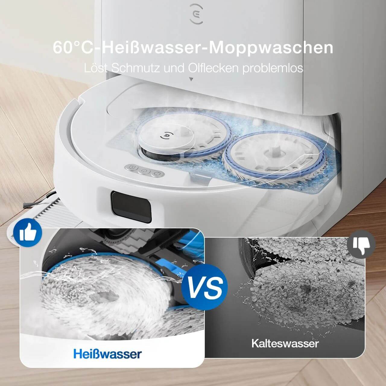 - Perfekte Sauberkeit: Keine verfangenen Haare, präzise gewischte Kanten und effizientes Saugen
