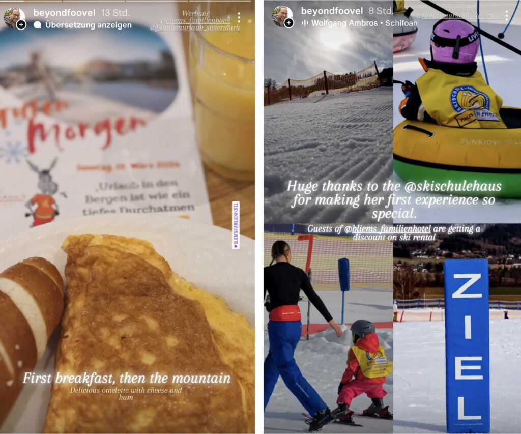 Nach der herzlichen Ankunft im Bliem’s Familienhotel – bei der uns die Rezeptionistin Tanja mit Engelsgeduld alles gezeigt hat und wir unser traumhaftes Zimmer inklusive eigenem Stockbett-Reich für die kleine Tochter bezogen haben (hier geht’s zum Tagebucheintrag) – startete der heutige Morgen unter besten Vorzeichen: eine erholsame Nacht und ein ausgiebiges Frühstück bildeten die perfekte Basis für unseren ersten richtigen Tag im Schnee.