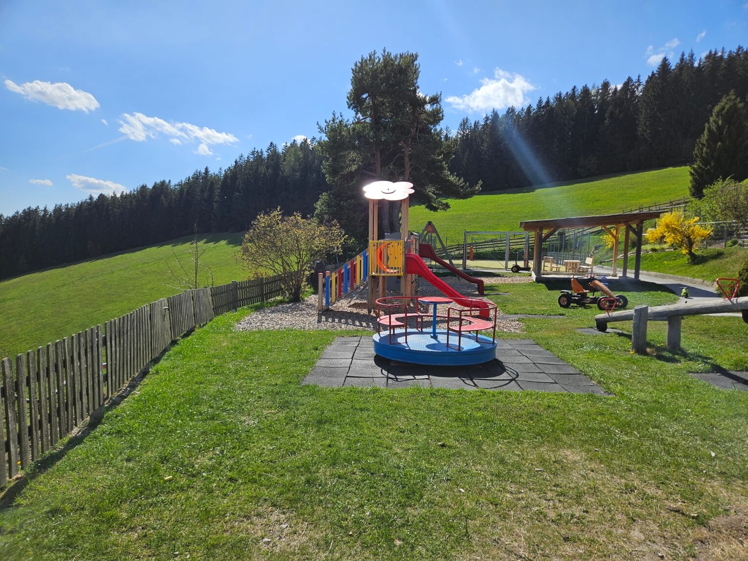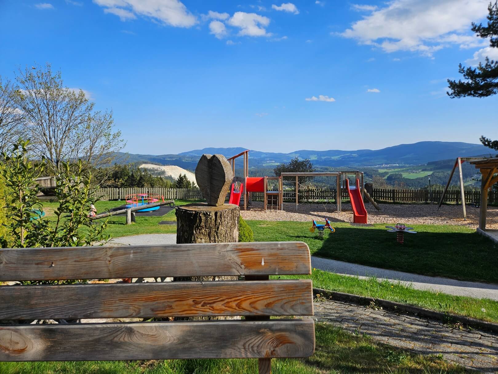 Nachdem wir uns im Zimmer eingerichtet hatten, zog es uns bei strahlendem Sonnenschein und einem tiefblauen Himmel sofort nach draußen, um den weitläufigen Außenbereich zu erkunden. Der Spielplatz war und ist ein tolles Erlebnis für beide unsere Kinder. Zwischen Klettertürmen, rasanten Rutschen, einem großen Trampolin und verschiedenen Schaukeln konnten sie sich so richtig austoben, während sie im Sandkasten versunken sind. Besonders schön für uns Eltern, überall auf dem Gelände sind liebevoll platzierte Bänke verteilt. So konnten wir entspannt Platz nehmen und den fantastischen Weitblick ins Tal genießen, während wir die Kleinen immer im Blick hatten.