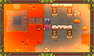 Die Welt, die sehr an die ersten Teile von Legend of Zelda erinnert, wird auf einer Karte am unteren Bildschirm des 3DS nach und nach aufgedeckt. Immer wenn wir uns auf einen neuen Teil der Welt begeben, erscheint der entsprechende Abschnitt auf der Karte. Alle Gebiete zu erreichen, gestaltet sich jedoch gar nicht so einfach: Die ganze Welt ist mit Rätseln gespickt. Schalter wollen betätigt werden, Druckplatten beschwert, Felsen verschoben, Schlüsselgegenstände gefunden und an den richtigen Stellen eingesetzt, damit man neue Areale betreten kann.