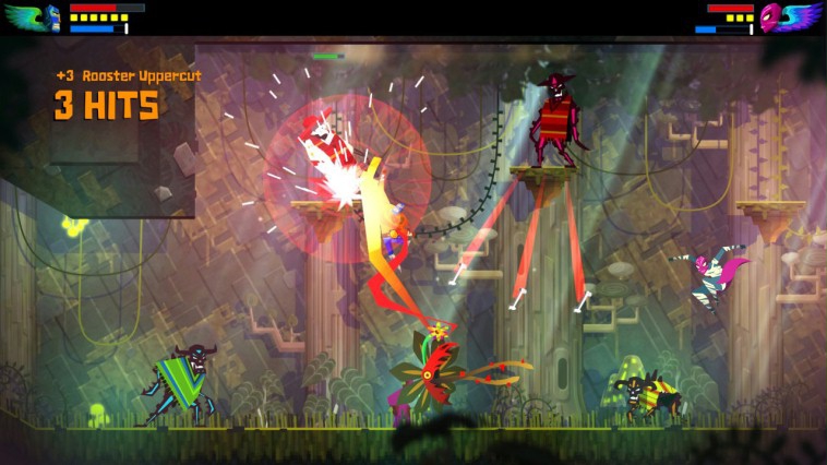 Guacamelee Super Turbo Champion Edition ist von Grund auf darauf ausgelegt, Spaß zu machen. Sei es der Drop-in-Drop-out-Koop-Modus (nur mit einem Pro Controller möglich!), sei es das süchtig machende Gameplay, sei es die perfekt miteinander verbundene Welt mit auffällig gefärbten Steinen, die ihr erst mit gewissen Fertigkeiten zerschlagen oder überhaupt erreichen könnt: So gut wie alles ist in diesem Titel motivierend und hält euch „nur noch für die nächsten fünf bis zehn Minuten“ fest, bis ihr bemerkt, dass ihr wieder fast eine Stunde mit dem Game verbracht habt.