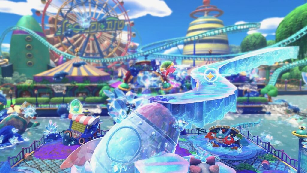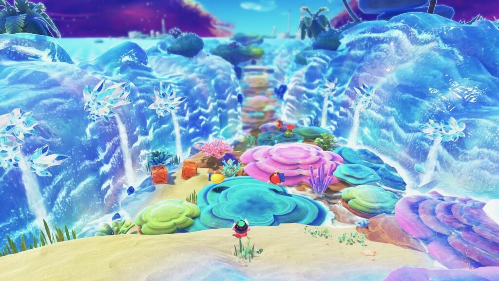 Kirby und das vergessene Land war bereits auf der ursprünglichen Switch ein herausragender 3D-Plattformer. Die Switch 2-Version poliert die ohnehin schon solide Basis auf Hochglanz und erweitert sie um durchdachte neue Inhalte. Das Leveldesign bleibt die große Stärke des Spiels: Abwechslungsreich, einfallsreich und voller versteckter Geheimnisse. Die Astralini-Abschnitte sind dabei mehr als bloßes Recycling. Durch die Kraft der Sternensplitter entstehen neue Strukturen wie Kristallbrücken oder Rampen, die völlig andere Routen durch bekannte Level eröffnen. Ein besonders gelungenes Beispiel: Ein ursprünglich am Meer spielender Abschnitt wird durch einen Sternsplitter so verändert, dass das Wasser geteilt wird und ihr den Meeresboden erkunden könnt.