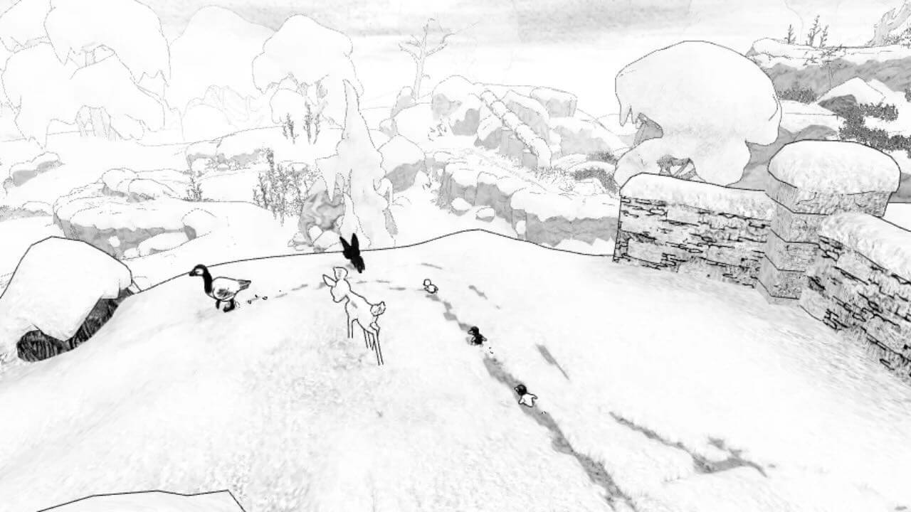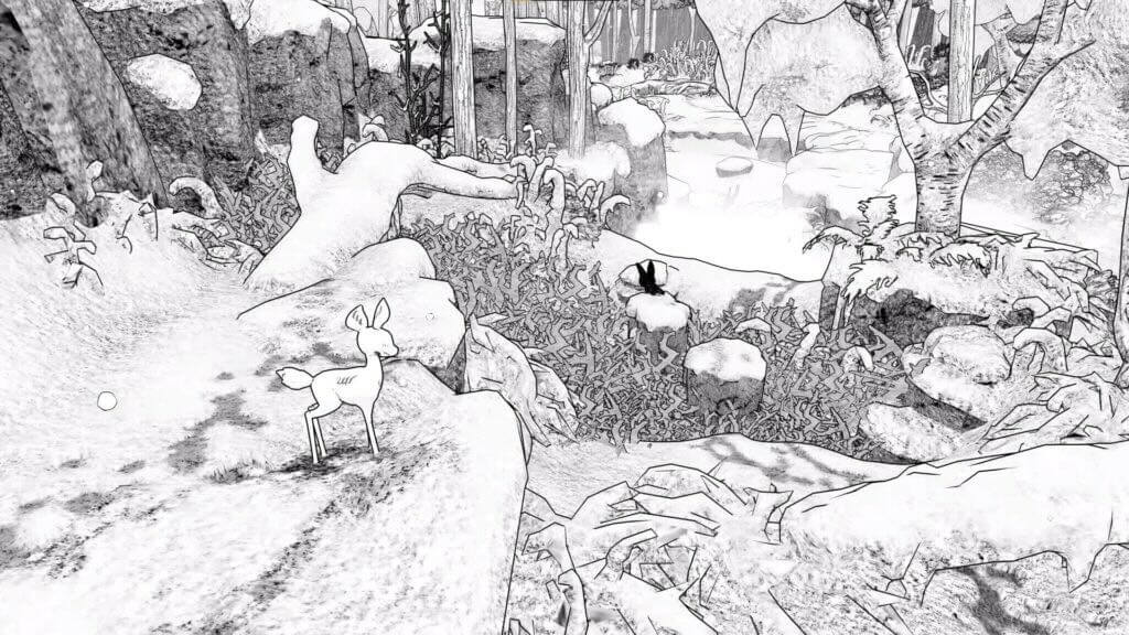 Blanc wird auf der offiziellen Produkt-Website als emotionale Reise beschrieben, in der ihr eine poetische Geschichte erleben dürft. In einem Schneesturm haben sich ein Wolfsjunges und ein Rehkitz verlaufen, und es gilt, sich miteinander auf den Weg zu machen. Beide wollen die Spuren ihrer verlorenen Familien im Schnee verfolgen und müssen daher kooperieren, damit sie sicher ans Ziel kommen. Mit einer durchgängigen Schwarz-Weiß-Kunstrichtung und einem einzigartigen Stil zwischen 2D-Modellen und 3D-Gameplay soll das Spiel wie bereits berichtet uns fesseln können. Zusammen mit dem Fehlen von Kämpfen, Game-Over-Bildschirmen, Dialogen oder Texten stellt dies sicher, dass Blanc von allen unabhängig von Alter, Sprache oder Spielerfahrung gespielt werden kann. Hier der Trailer zum Spiel für euch: