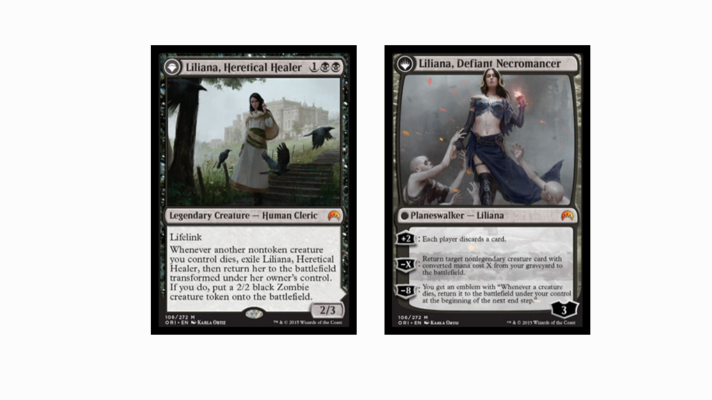Neben der Ankündigung der Videogame-Variante von Magic: Origins bzw. Magic: Ursprünge gab es auf der PAX East auch ein Preview zur Papierversion von Magic: Origins, die diesen Sommer erscheinen wird. Um den SpielerInnen die Möglichkeit zu bieten, hautnah dabei zu sein, wenn ein/e MagierIn seinen/ihren Funken entzündet und zum Planeswalker wird, wird es zum ersten Mal doppelseitige Karten geben, deren eine Seite eine Kreatur und deren andere Seite ein Planeswalker ist. Aber ein Bild sagt mehr als tausend Worte.