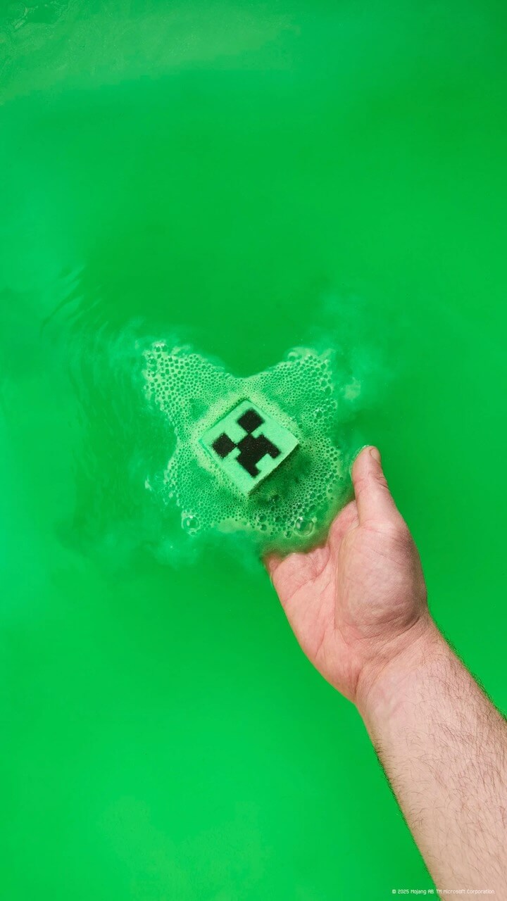 Steig mit dieser Lush x Minecraft Badebombe in die Wanne und lass dich von einem spritzigen Hauch Zitronengras und einer Eruption von grünem Sprudel wegpusten. Sobald dein Creeper verschwunden ist, wirst du dich viel entspannter fühlen und besser schlafen können. Weil kein Monster mehr in der Nähe ist. Einfach mit Vorsicht genießen: Schleiche dich ins Badezimmer und lass ein heißes Bad ein. Gib die Badebombe hinein und werde vom sprudelnden Zitronengrasduft erfüllt. 6,- Euro kostet euch so ein Creeper!