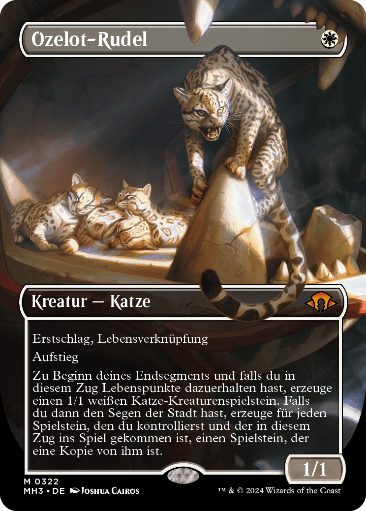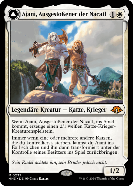 Ihr bekommt ohnehin einen 2/1 Katzenkrieger, wenn ihr Ajani spielt und sobald eine der Katzen von ihm oder dem Ozelot-Rudel stirbt könnt ihr Ajani zu Ajani, Rächer der Nacatl transformieren.