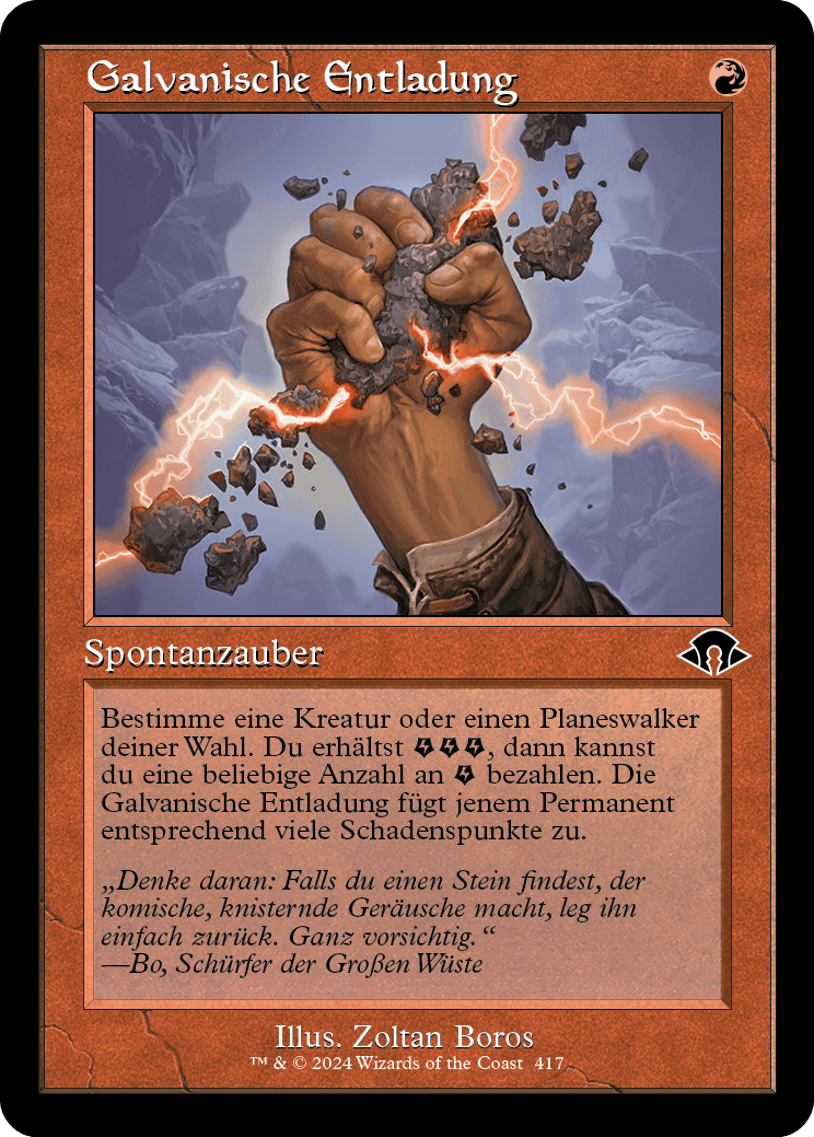Danach könnt ihr Dinge wie Galvanische Entladung spielen um es wieder auszugeben.