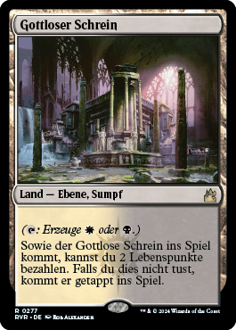 Der unfassbar teure Klassiker in Magic ist, dass ihr das Fetchland für einen Lebenspunkt opfert und euch damit ein Shockland wie Gottloser Schrein oder Geheiligter Springbrunnen aus eurem Deck holt.