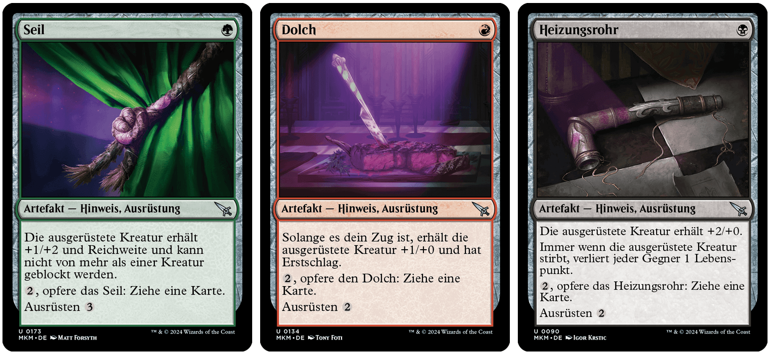 Noch vor kurzem erschien das Set Ravnica Remastered und mit Mord in Karlov Manor bleiben wir auch genau dort. Es geht noch immer um die Gilden in Ravnica, aber diesmal geht es um eine Party auf Karlov Manor und eine aufgetauchte Leiche. Wenn ihr jetzt an Krimis, aber auch Cluedo denkt, dann liegt ihr goldrichtig. Wizards of the Coast wirft nicht nur viele Verdächtige ins Spiel, auch potenzielle Mordwaffen haben humorvolle Kartendesigns erhalten.