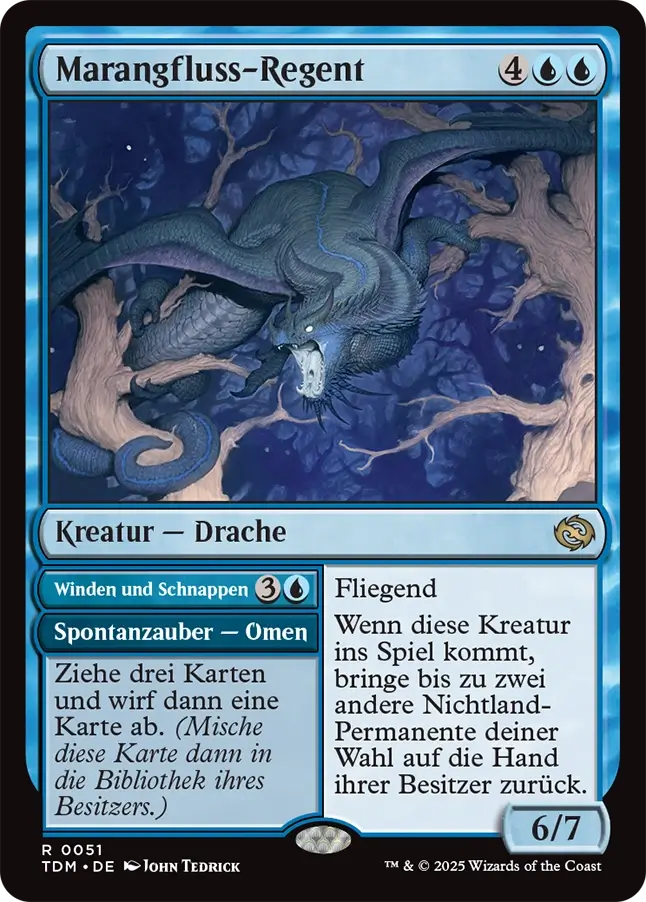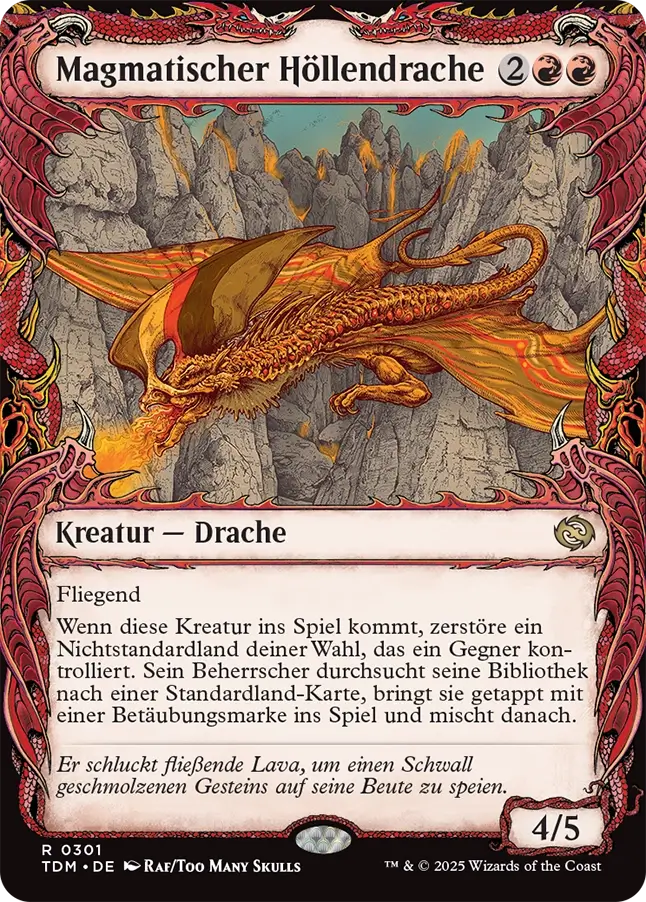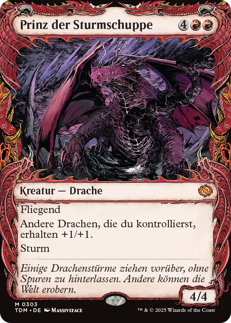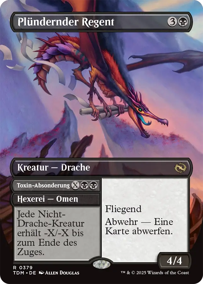 Besonders in Commander-Partien kann das schon mal ein lästiger Faktor sein. Diesen „Fehler“ hat man in Tarkir: Dragonstorm nicht wiederholt. Die Karten haben ein sehr schöne Umrahmung mitsamt Drachenmuster und bleiben dabei trotzdem lesbar.