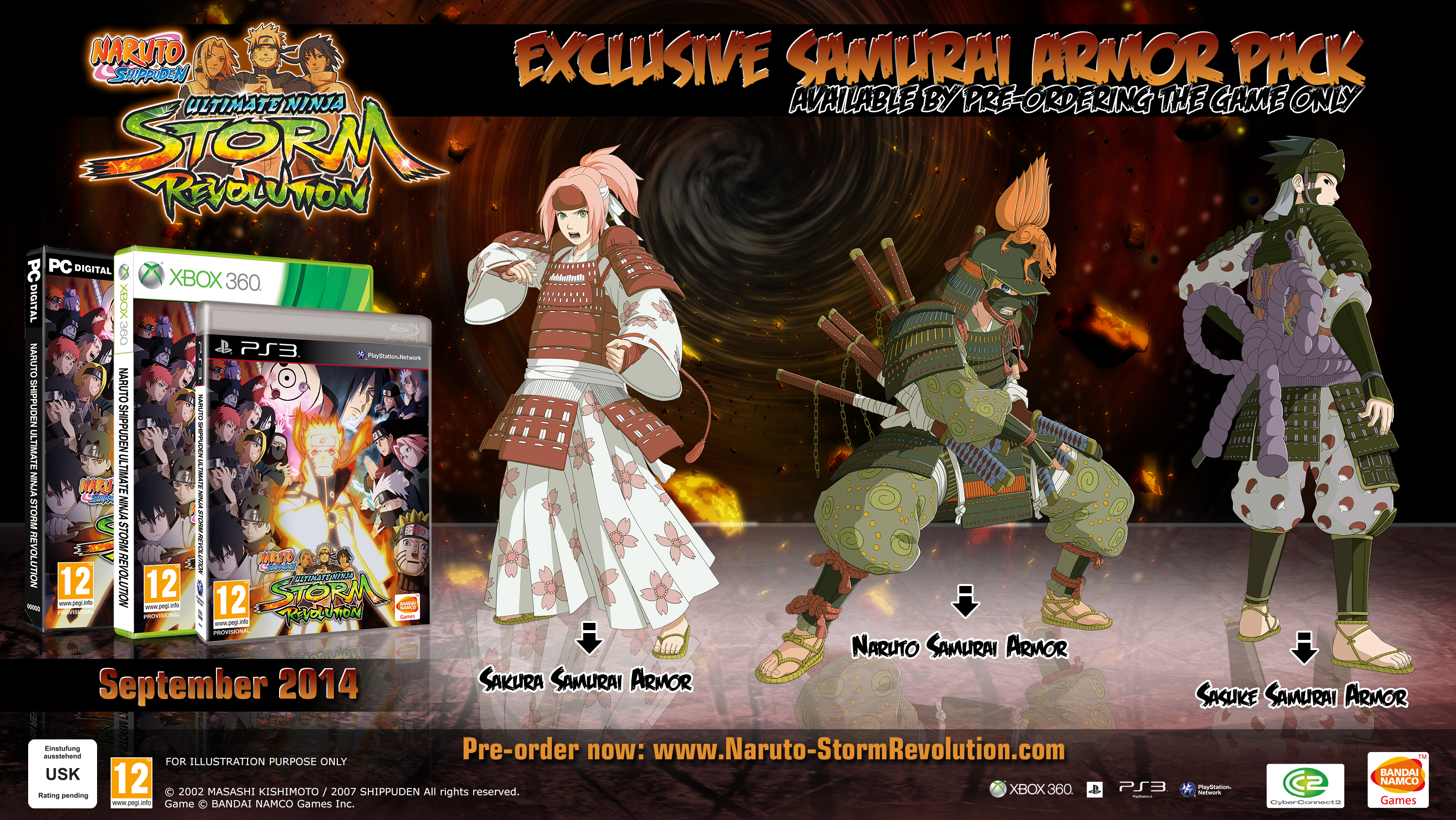 BANDAI NAMCO gab nun bekannt, dass Naruto Shippuden: Ultimate Ninja Storm Revolution (kurz Naruto SUNS Revolution) im September 2014 in Europa und Australasien erscheinen wird. Der neueste Serienableger kommt für PS3, Xbox 360 und PC in verschiedenen Ausführungen mit unterschiedlichen Inhalten.