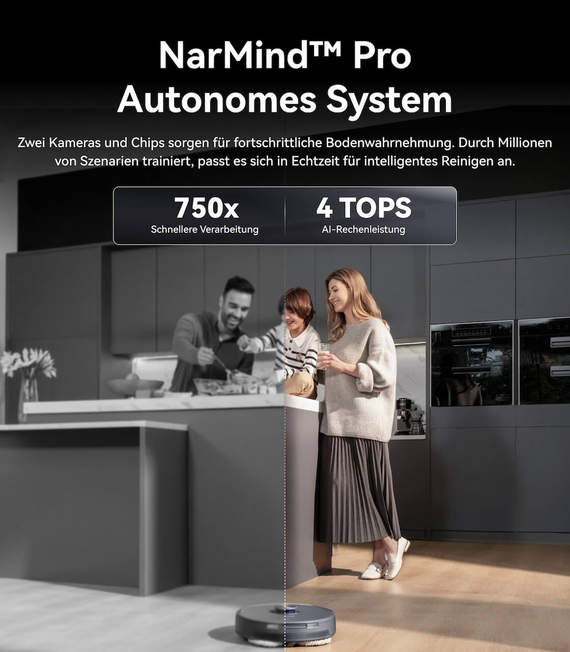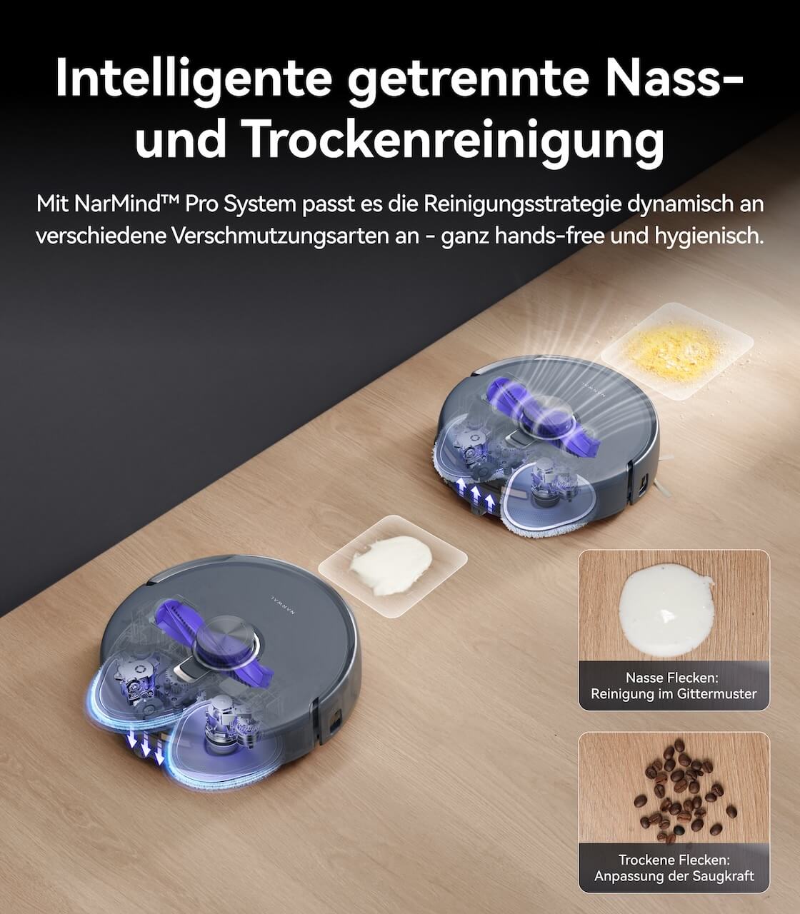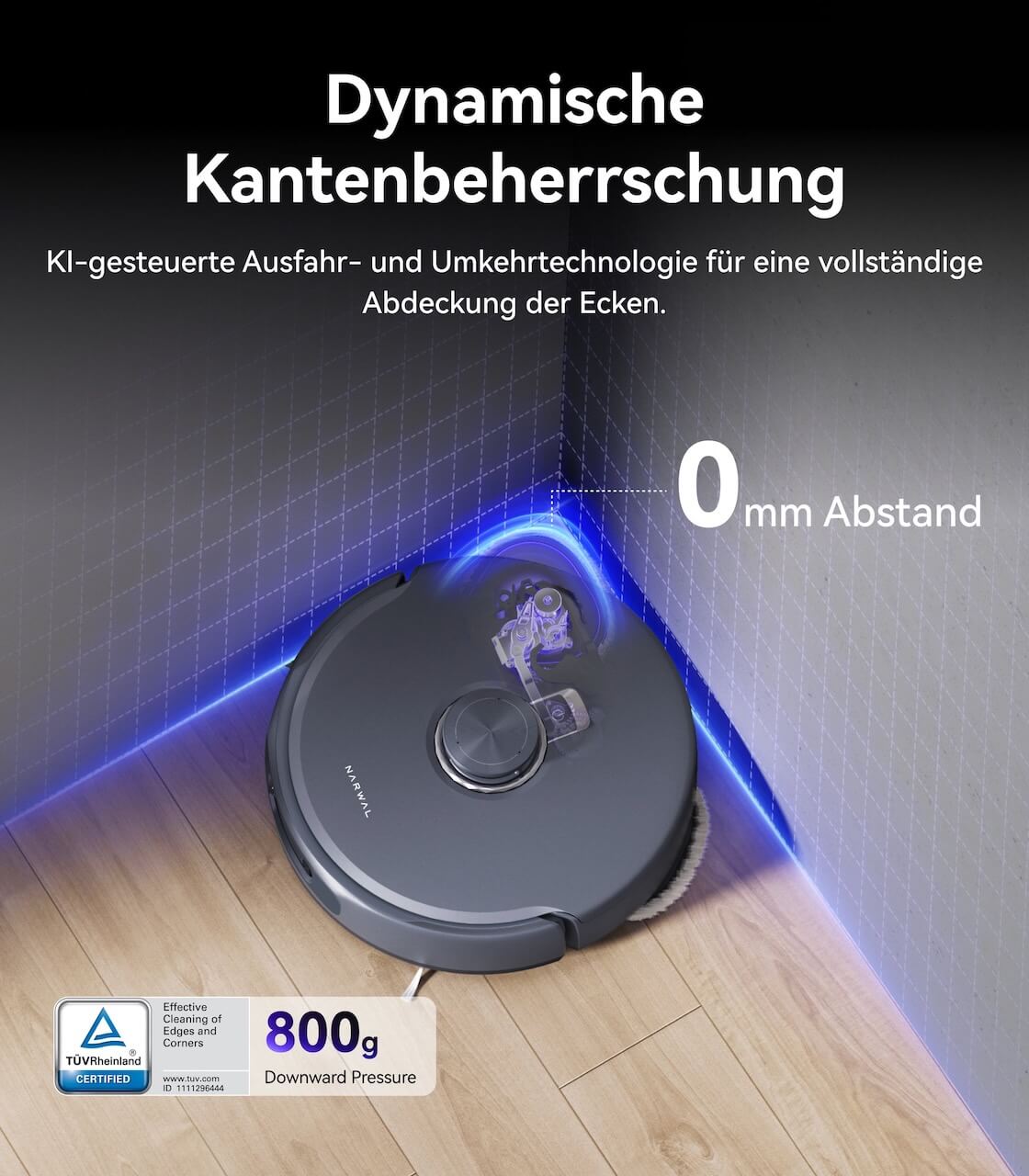 Saugen, Wischen, Selbstreinigung und intelligente Navigation – erfüllt dieses Gerät alle Anforderungen eines modernen Haushalts? Der Hersteller Narwal präsentiert seinen Freo Z10 Ultra auf der offiziellen Website jedenfalls als Komplettlösung für die Bodenreinigung. Mit einer beeindruckenden Saugkraft von bis zu 18.000 Pa macht er Staub, Tierhaaren und selbst hartnäckigem Schmutz den Garaus. Das integrierte Sensorsystem ist in der Lage, den Verschmutzungsgrad eurer Böden zu erkennen und automatisch mehrere Durchgänge zu planen, wenn nötig. Besonders beeindruckend ist die EdgeReach-Technologie, die eine Kantenreinigungsgenauigkeit von sagenhaften 99,68 % erreichen soll – also eh schon so gut wie perfekt, richtig? Dazu kommt, dass alles nicht nur wie von selbst ablaufen soll, sondern das Ganze auch wartungsarm ist.
