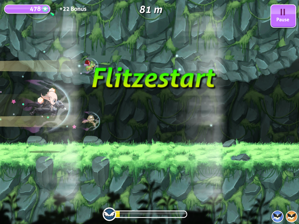 Nosferatu – Twilight Runner ist ein Gratis-Endless-Runner-Game, das schon ganz wie der Vorgänger mit seiner süßen Aufmachung punktet. Ihr habt durch die Levels zu springen und zu rennen, diverse Münzen zu sammeln, könnt eure Charaktere und Reittiere aufwerten und helft nebenbei der Welt ein wenig auf die Sprünge. Ihr könnt euch auch auf Facebook anmelden, um euch mit euren FreundInnen zu vergleichen, was aber völlig optional ist.