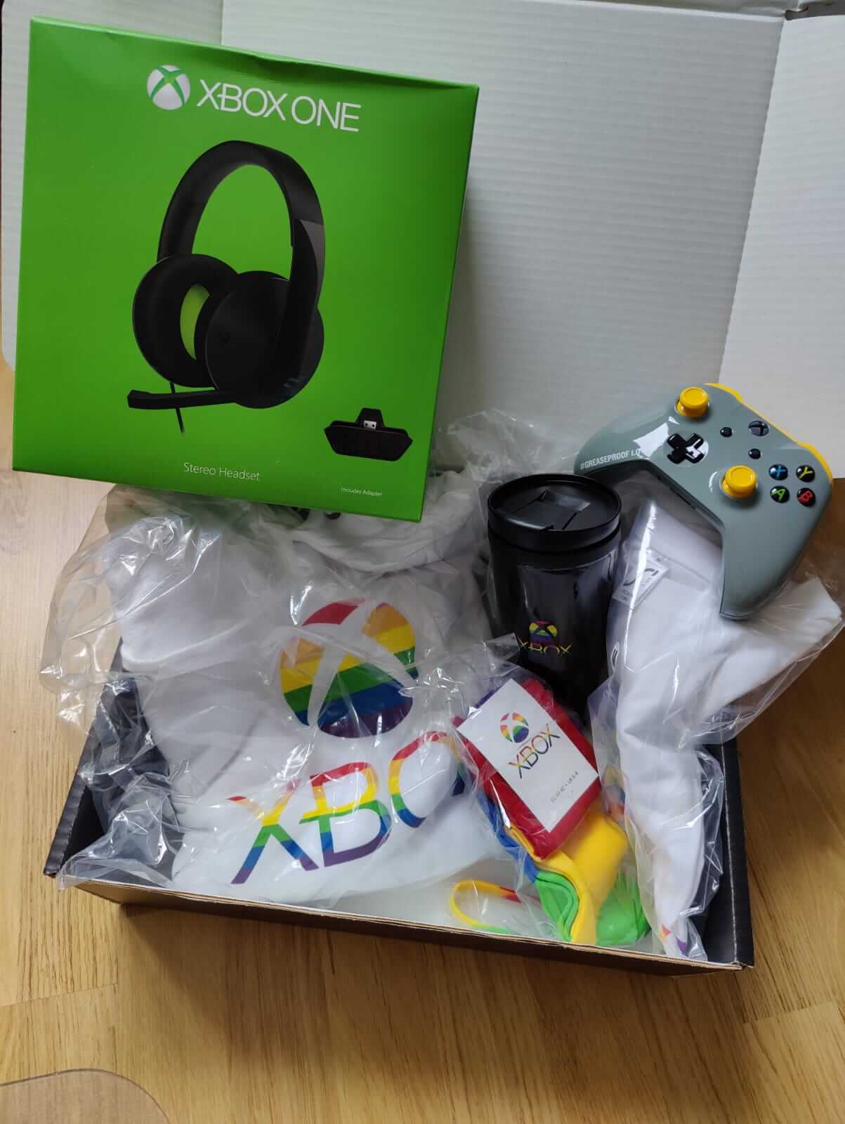 - 1x Xbox Diversity Box mit Socken, T-Shirt, Pullover, Armband und Trinkbecher