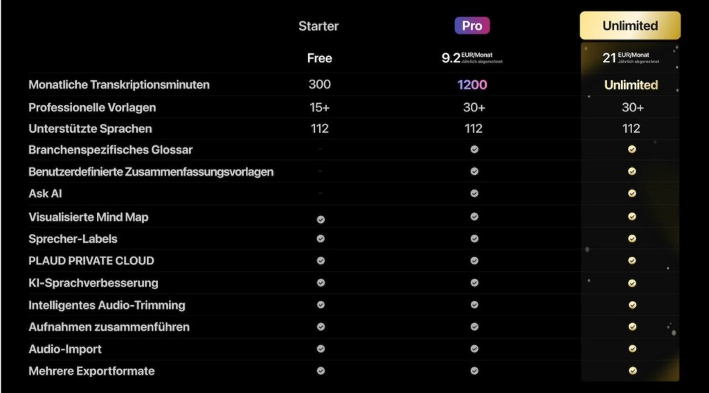 Der PLAUD NotePin wird mit einem attraktiven Servicepaket angeboten, das 300 kostenlose KI-Transkriptionsminuten pro Monat beinhaltet. Das Sonderangebot umfasst zusätzlich einen kostenlosen Magnetstift im Wert von 22,99 Euro, unbegrenzten Cloud-Speicher und einen erweiterten KI-Starterplan im Wert von 69 Euro. Diese umfassende Ausstattung macht den Einstieg besonders attraktiv. Der integrierte Ansatz mit Hardware, Software und Cloud-Services bietet einen deutlichen Mehrwert gegenüber sonstigen separaten Lösungen. Die kontinuierliche Weiterentwicklung der KI-Funktionen durch Software-Updates stellt sicher, dass das Gerät auch zukünftig auf dem neuesten Stand bleibt. Dazu kommt die Unterstützung verschiedener KI-Modelle wie GPT-4o und Claude 3.5 Sonnet, die Flexibilität und Spezialisierungen bietet.