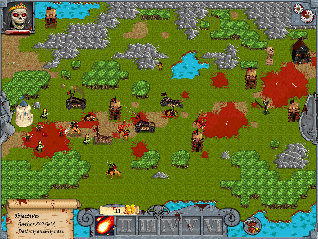 Neben den verschiedenen Levels, die jeweils unterschiedliche Herausforderungen bieten, ist die wichtigste Ressource im Spiel das Blut der Feinde – und das gibt es in Oh My Gore! in rauen Mengen. Mit dem Lebenssaft können neue und mächtige Zauber gelernt und eingesetzt werden. In den Levels gibt es zudem Elemente, die sich taktisch einsetzen lassen, zum Beispiel einen Damm: Bricht er, werden die feindlichen Lager überflutet und deren Bodeneinheiten am Weiterkommen gehindert. Zufallsereignisse wie Vulkanausbrüche oder Überraschungsangriffe verleihen Oh My Gore! darüber hinaus viel Abwechslung.