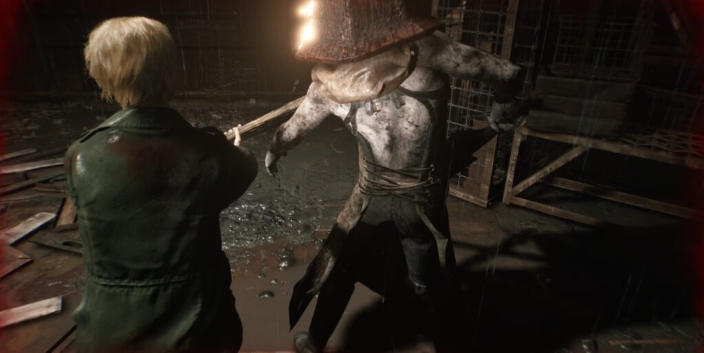 Auch der erste Bosskampf gegen Pyramidhead selbst wurde angepasst. Der Bossraum ist deutlich größer und ist voller Gegenstände, die man einerseits als Deckung aber auch als Hindernis betrachten kann. Der Kampf war im Original von ziemlich simplem im Kreis laufen und Schießen geprägt. In den Grundzügen tut man auch im Remake nichts anderes, aber durch die höhere Beweglichkeit unseres Gegners und von uns selbst, wie auch der geräumigeren Arena, bekommt der Kampf ein wenig mehr Komplexität. Ein klares Plus!