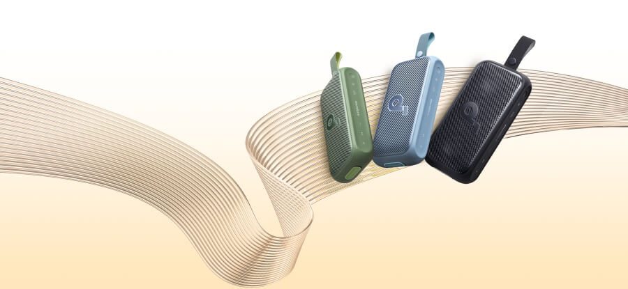 Mit der hauseigenen SmartTune-Technologie, 30 Watt Stereo-Klang und einem IPX7-Wasserschutz ist der soundcore Motion 300 besonders geeignet für den Garten oder beim Campen und Wandern. Vor allem dank einem abnehmbaren Gurt, der auch zur Befestigung dient. Der Lautsprecher ist in drei verschiedenen, stylishen Farben erhältlich: Mirage Black, Frost Blue und Fern Green. Ein stilvolles Farbspritzer-Motiv rundet den Look ab. Optisch setzt er so die mit dem soundcore Motion X600 eingeführte Designsprache fort.