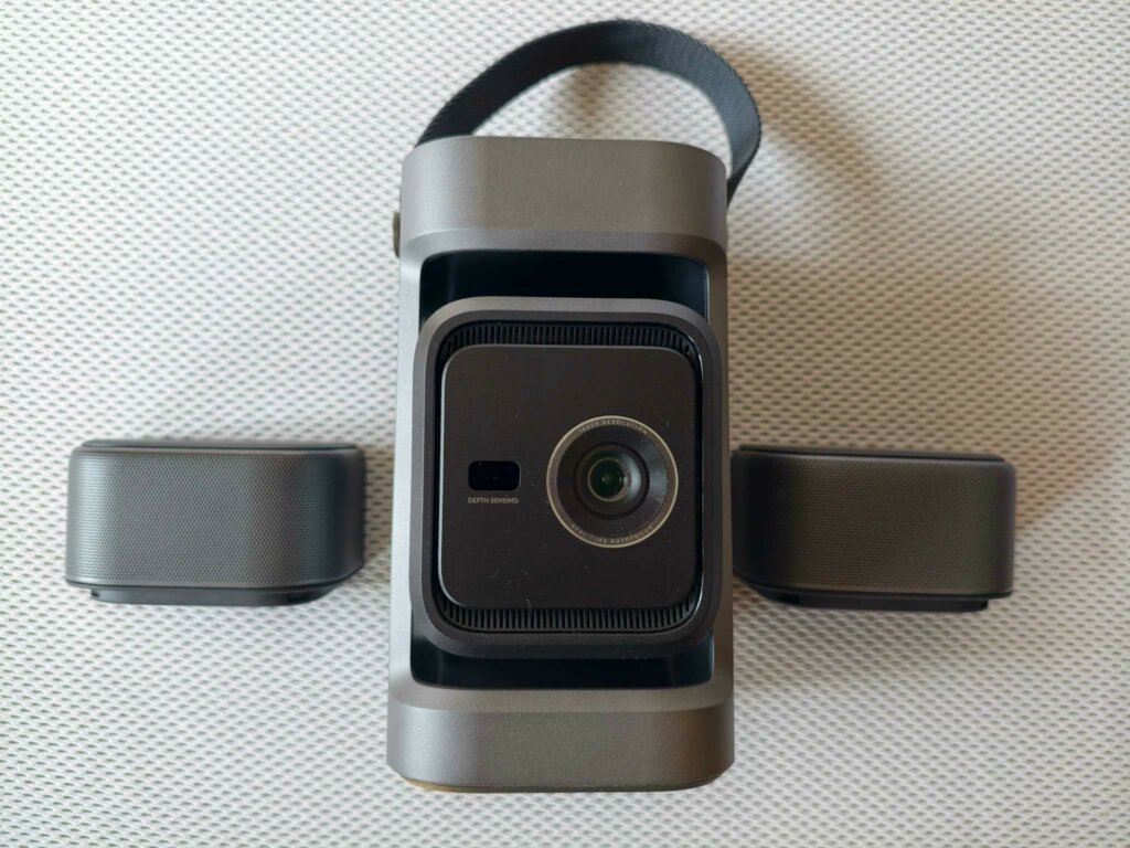Das absolute Highlight in meinem nebula P1 Test sind ohne Zweifel die abnehmbaren Lautsprecher. Fast jeder portable Beamer hat das gleiche Problem: Der Ton kommt von dort, wo das Gerät steht – also meist hinter oder neben euch. Das wirkt unnatürlich, da das Bild vor euch ist. soundcore löst dieses Problem genial. Die beiden 10-Watt-Lautsprecher lassen sich einfach vom Gehäuse lösen und frei im Raum positionieren. Ihr dürft sie also direkt links und rechts neben eurer Projektionsfläche aufstellen.