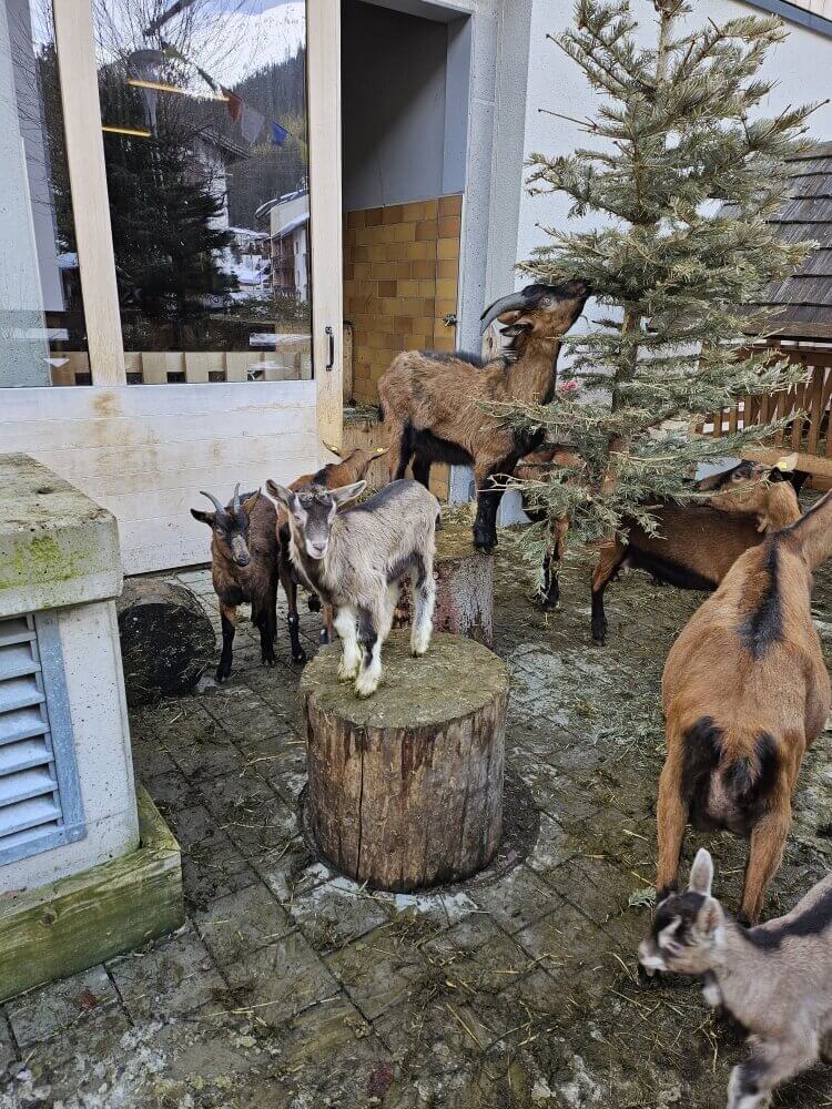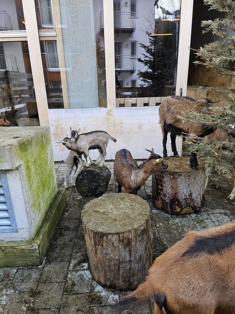 So kommt man am kleinen Hofladen der Sennerei vorbei, in dem regionale Köstlichkeiten darauf warten entdeckt zu werden. Beim Stöbern kann man zugleich einen Blick hinter die Kulissen werfen und kann die Tiere beobachten. Gerade den frecheren Vierbeinern hätte ich hier Stunden zuschauen können.