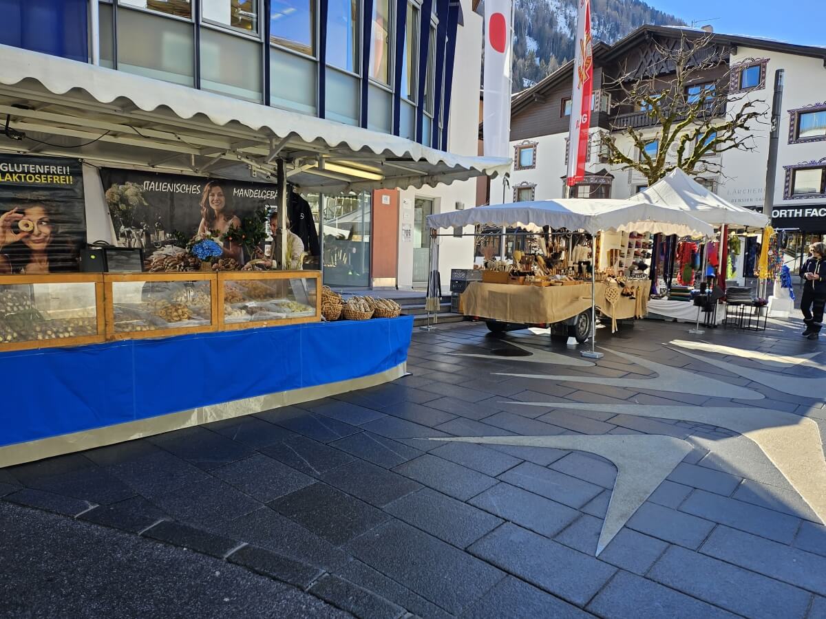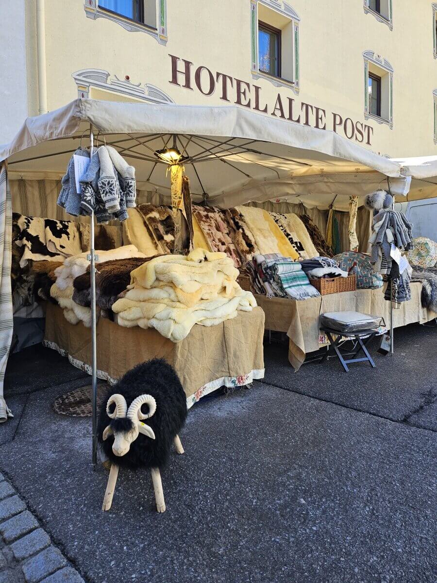 Bevor ich mich auf den Heimweg machte, stand ein Bummel durch den Ort an. Ohne Eile, ohne Plan, einfach zu Fuß durch St. Anton. Hier wird Tradition und internationalen Wintersport-Charakter auf eine charmante Weise vereint. St. Anton lebt von Kontrasten, und genau das spürt man bei einem letzten Spaziergang vielleicht sogar am stärksten: sportlich und entspannt, traditionsbewusst und international, mondän und trotzdem bergverbunden. Kleine Boutiquen, Sportgeschäfte, gemütliche Cafés. Das Timing war zudem perfekt: In der Fußgängerzone fand ein kleiner Kunsthandwerkmarkt statt. Es ist faszinierend zu sehen, wie lokal verwurzelt die Region trotz des internationalen Publikums geblieben ist – von handgeschnitzten flauschigen Ziegenböcken bis zu Filzarbeiten gibt es hier einiges zu bestaunen.