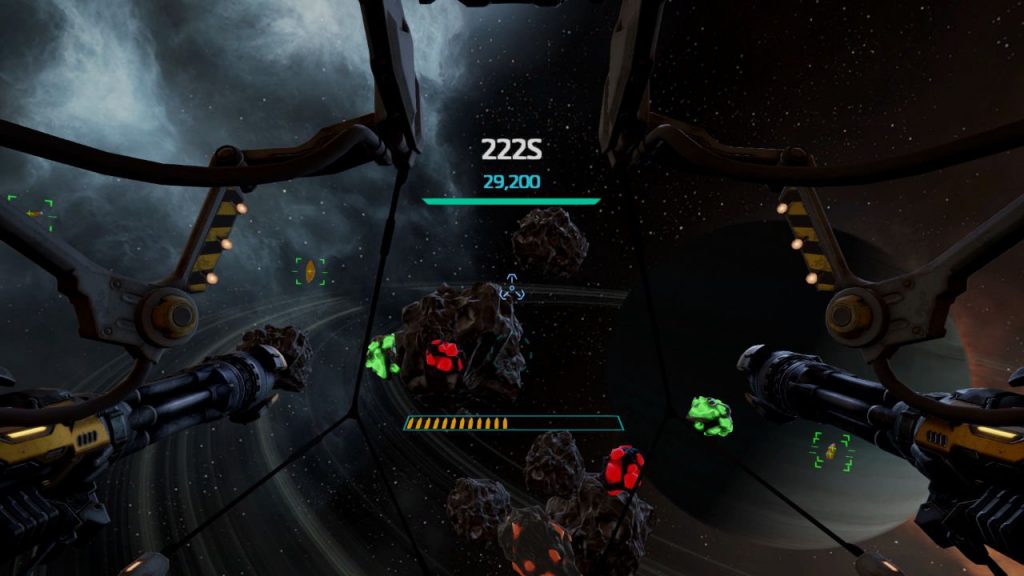 Ihr müsst also euren Kopf stets in Bewegung halten, um alles im Überblick zu haben. Vor allem, wenn die Formationen beginnen, sich zu vermischen, wird es fordernd. Die Steuerung funktioniert optimal und da ihr euch nicht groß drehen müsst, wird euch auch nicht übel davon. Die Levels sind schnell vorüber und geben euch immer wieder Pausen.