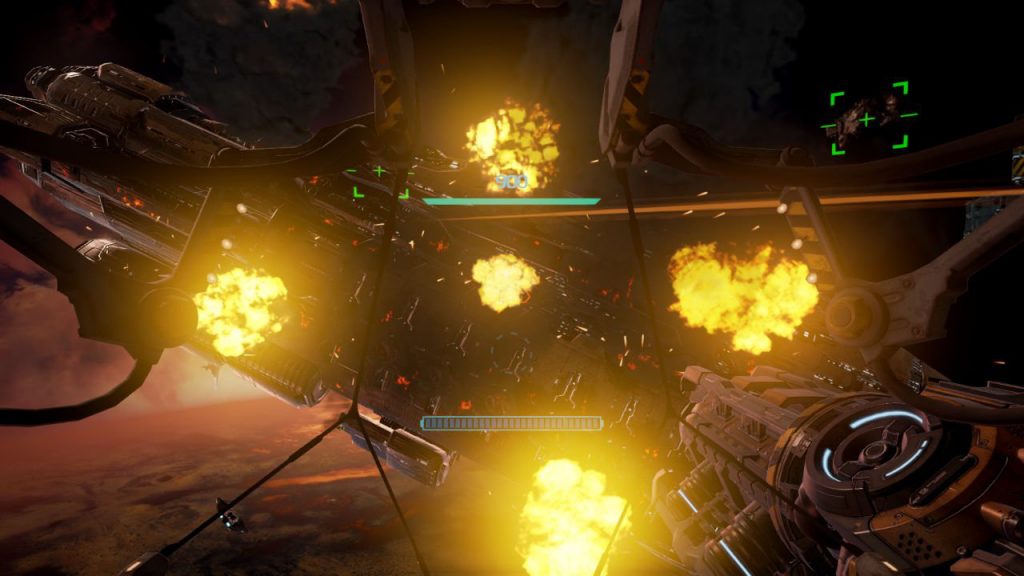 Mit den Schultertasten des DualShock-Controllers feuert ihr die Bordgeschütze ab. Zielen müsst ihr durch Kopfbewegungen – das klingt zwar komisch, fühlt sich aber hervorragend an. Auch in RIGS funktioniert das Prinzip ähnlich, ihr habt in Gunjack aber viel berechenbarere Wellen.