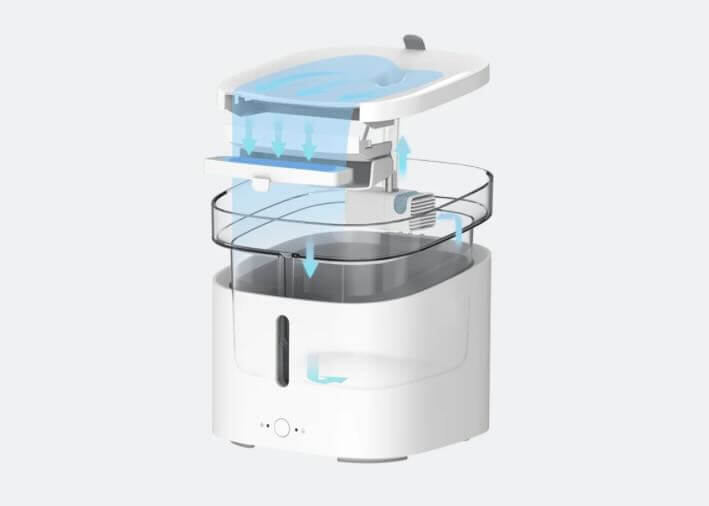 Offizielle Infos gibt es natürlich, und derer bedienen wir uns hier gleich einmal. So wird unter dem Banner „Rund um die Uhr gesundes Wasser für Haustiere“ damit geworben, dass die zirkulierende Wasserquelle dank einer vierstufigen Filterung jederzeit klares und gutes Wasser für Hund und Katz bereitstellt. Leiser Betrieb sei ebenso gewährleistet wie eine Smart Home-Anbindung, und das Gerät hat 2020 auch den IF Design Award gewonnen. Klingt gut, oder? Ob das Produkt seinen Lorbeeren auch gerecht wird, dem widmen wir uns dann im Testbericht.