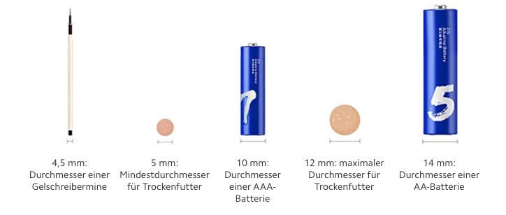 Kommen wir zum Smart Pet Feeder, der in der App als Xiaomi Intelligente Futtervorrichtung für Haustiere betitelt wird. Auch dieser benötigt gerade mal sechs Watt im Gebrauch, das ist wirklich zu vernachlässigen. Die Produktabmessungen des Futterspenders sind etwas größer geraten, sie betragen 311 x 180 x 387 mm bei einem Eigengewicht von drei Kilogramm. Sein Fassungsvermögen wird mit 3,6 Litern angegeben, und hier ist noch wichtig zu beachten, dass nicht jedes Trockenfutter unterstützt wird. Das Trockenfutter sollte zwischen 5 und 12 mm Durchmesser haben – wenn ihr das einhalten könnt, gibt es bei der täglichen Verwendung keine Probleme. Viel mehr gibt es nicht zu sagen, also wenden wir uns dem Fazit zu!
